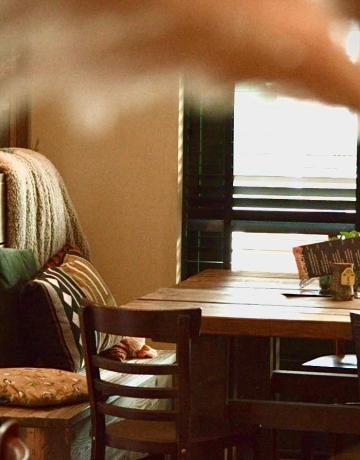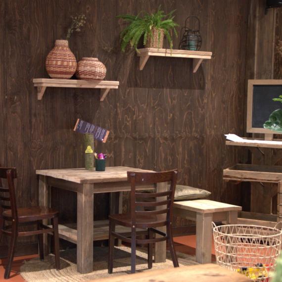 Aan onze stoere boerentafels met uitzicht op bijvoorbeeld onze zeug Olga en haar prachtige biggen is koffie drinken een ware beleving.
