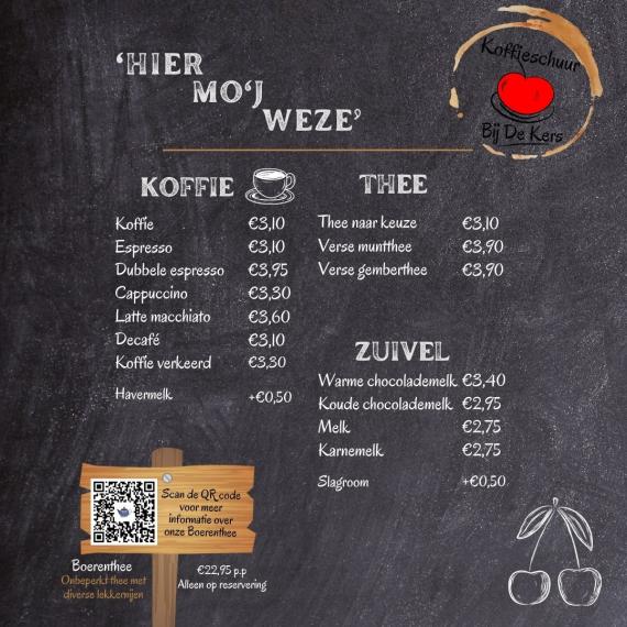 Wil je verzekerd zijn van een plekje en een optimale beleving in onze Koffieschuur? Reserveer dan vooraf en laat je verrassen door de gemoedelijke sfeer en de pure smaken van het boerenleven.