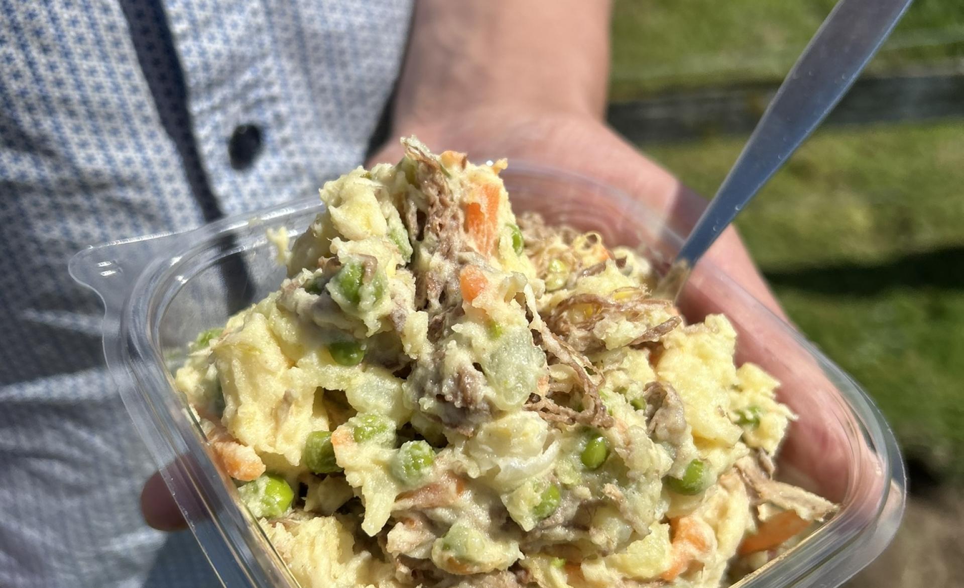 Rund- en varkensvlees zijn natuurlijk van onze eigen ossen en varkens Dat maakt onze salades uniek en extra lekker! Fruit en groenten komen uit het seizoen en dus ook de salades die we in onze koeling verkopen. Het aanbod kan dus verschillen maar we hopen je telkens weer opnieuw te verrassen.