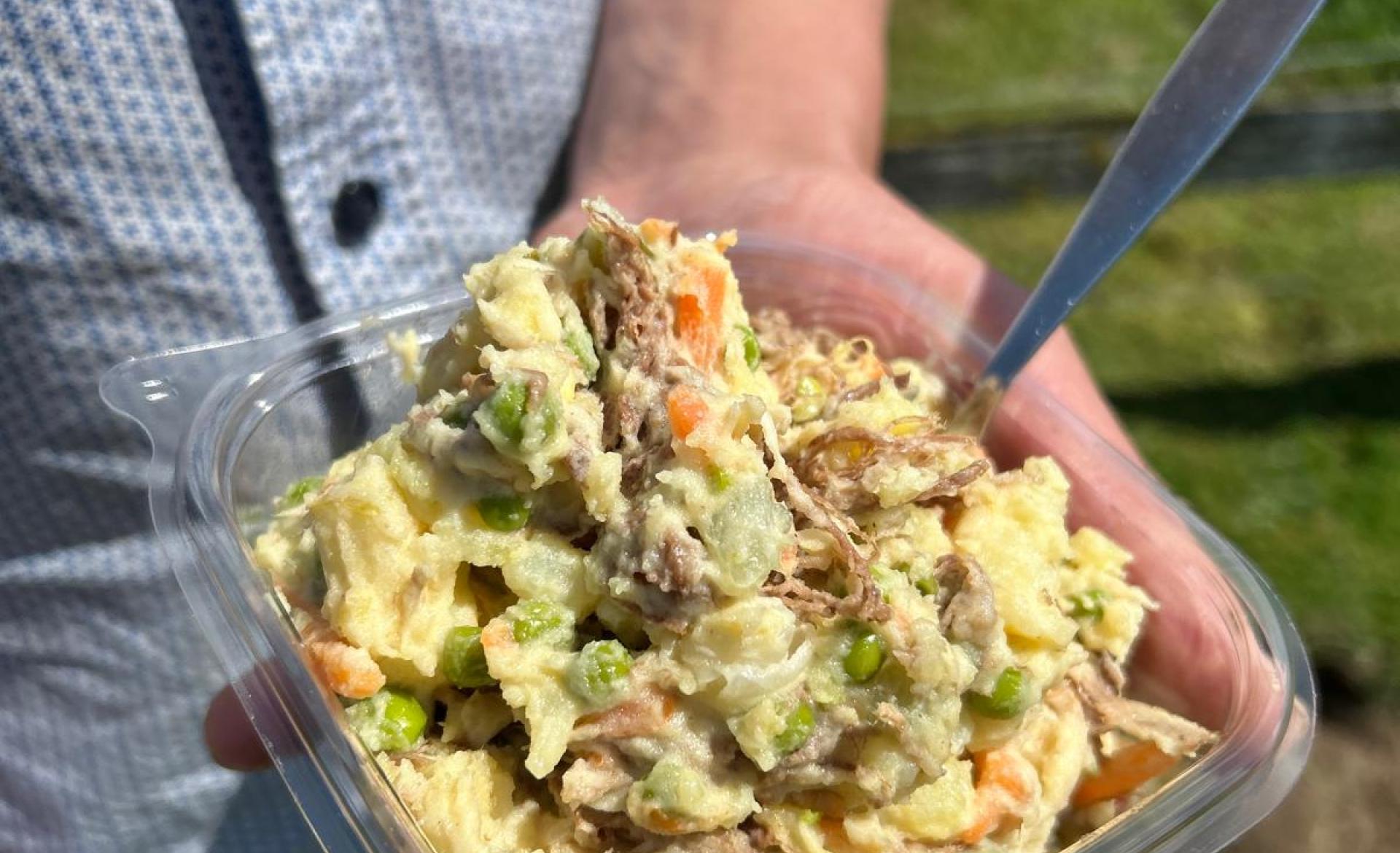 Rund- en varkensvlees zijn natuurlijk van onze eigen ossen en varkens. Dat maakt onze salades uniek en extra lekker! Groenten komen uit het seizoen en we gebruiken de lekkerste kruiden & sauzen.