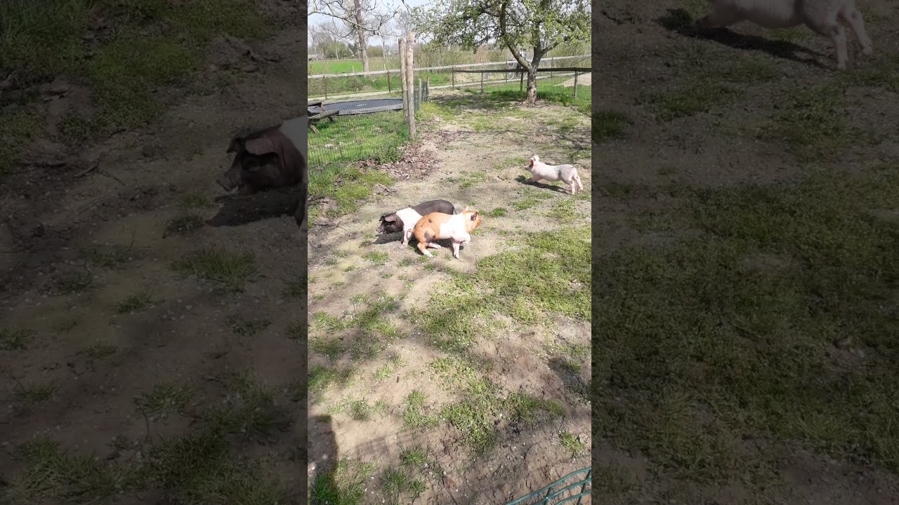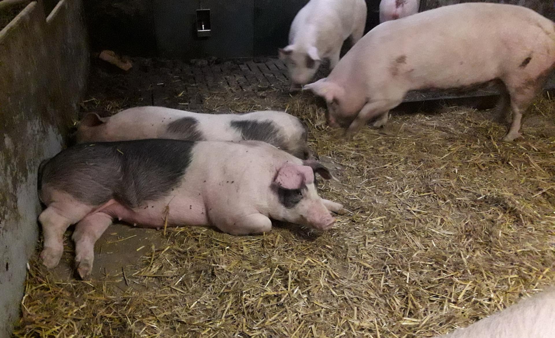 De zeugen zitten bij elkaar in één strohok met uitloop naar de wei en de poel. Ze worden gedekt door onze eigen beer. Vlak voordat een zeug moet gaan werpen, verhuist ze naar het kraamhok. Dit is een strohok met biggennest en verharde buiten uitloop. Vanaf ons boederijterras kun je zo in het kraamhok kijken. Als de biggen zijn geboren blijven ze ongeveer 6 weken in het kraamhok bij de zeug. Daarna gaan de biggen naar de biggen afdeling (strohok met verharde buiten uitloop) en de zeug gaat weer terug de groep in bij de andere zeugen. Zijn de biggen groot genoeg, dan gaan ze naar de stal voor de vleesvarkens. Ook dit zijn ruimtes met stro en een verharde buiten uitloop. Hier blijven de varkens totdat ze ongeveer 8 maanden oud zijn.
