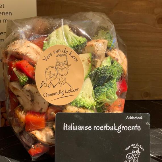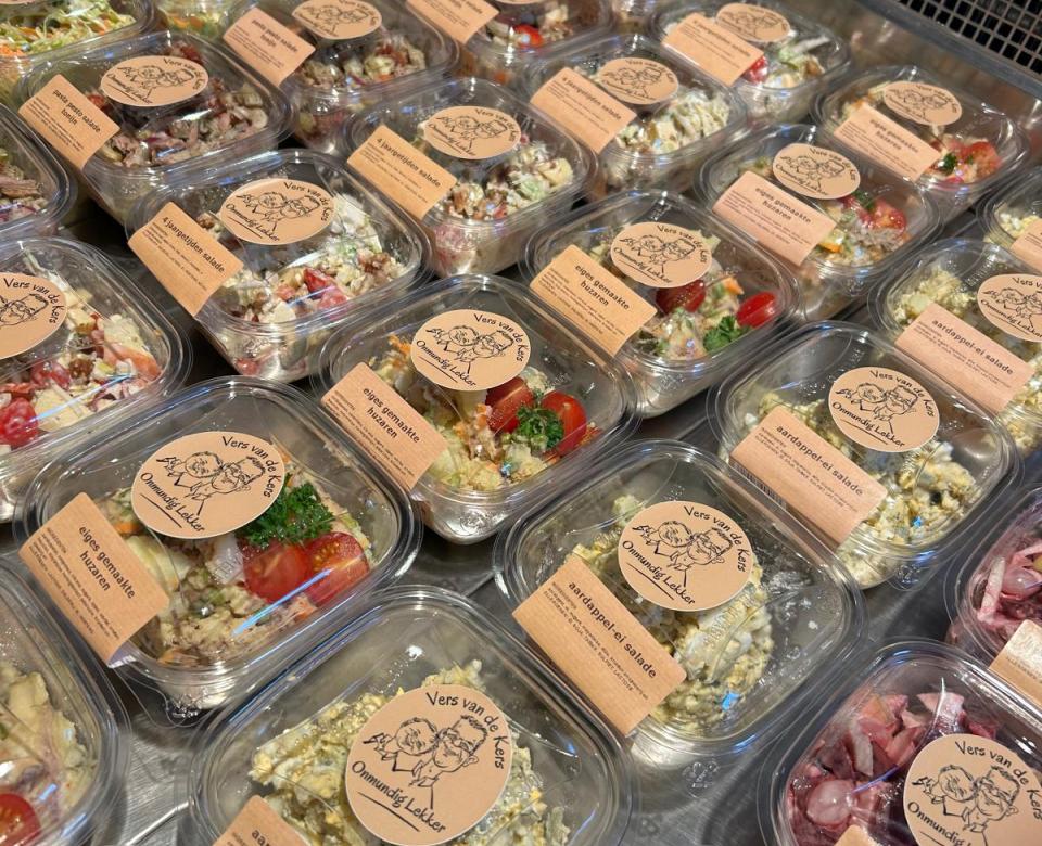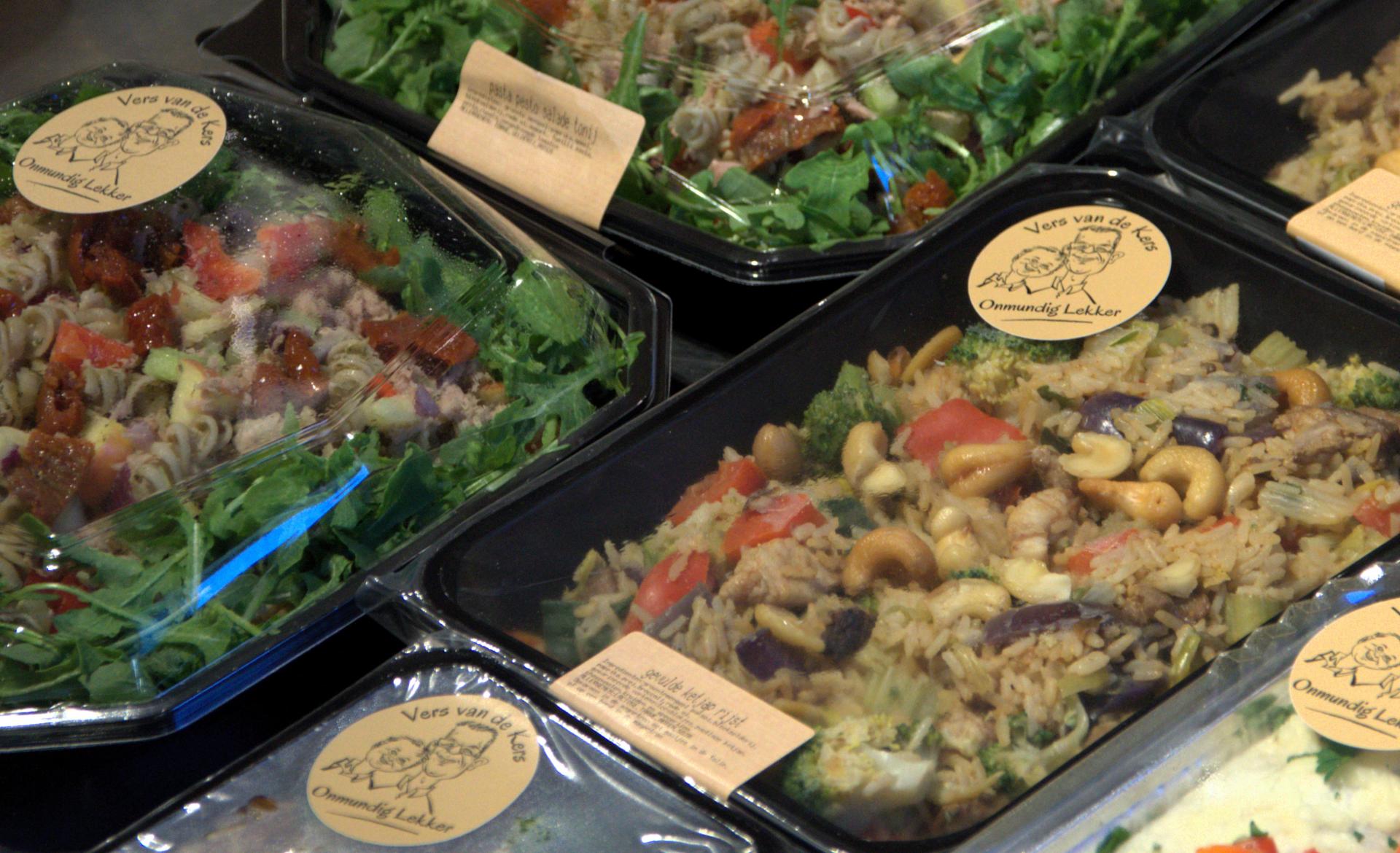 Naast de huisgemaakte salades ligt er ook veel voorgesneden groente in onze koeling. Lekker snel aan tafel. Wat een gemak!